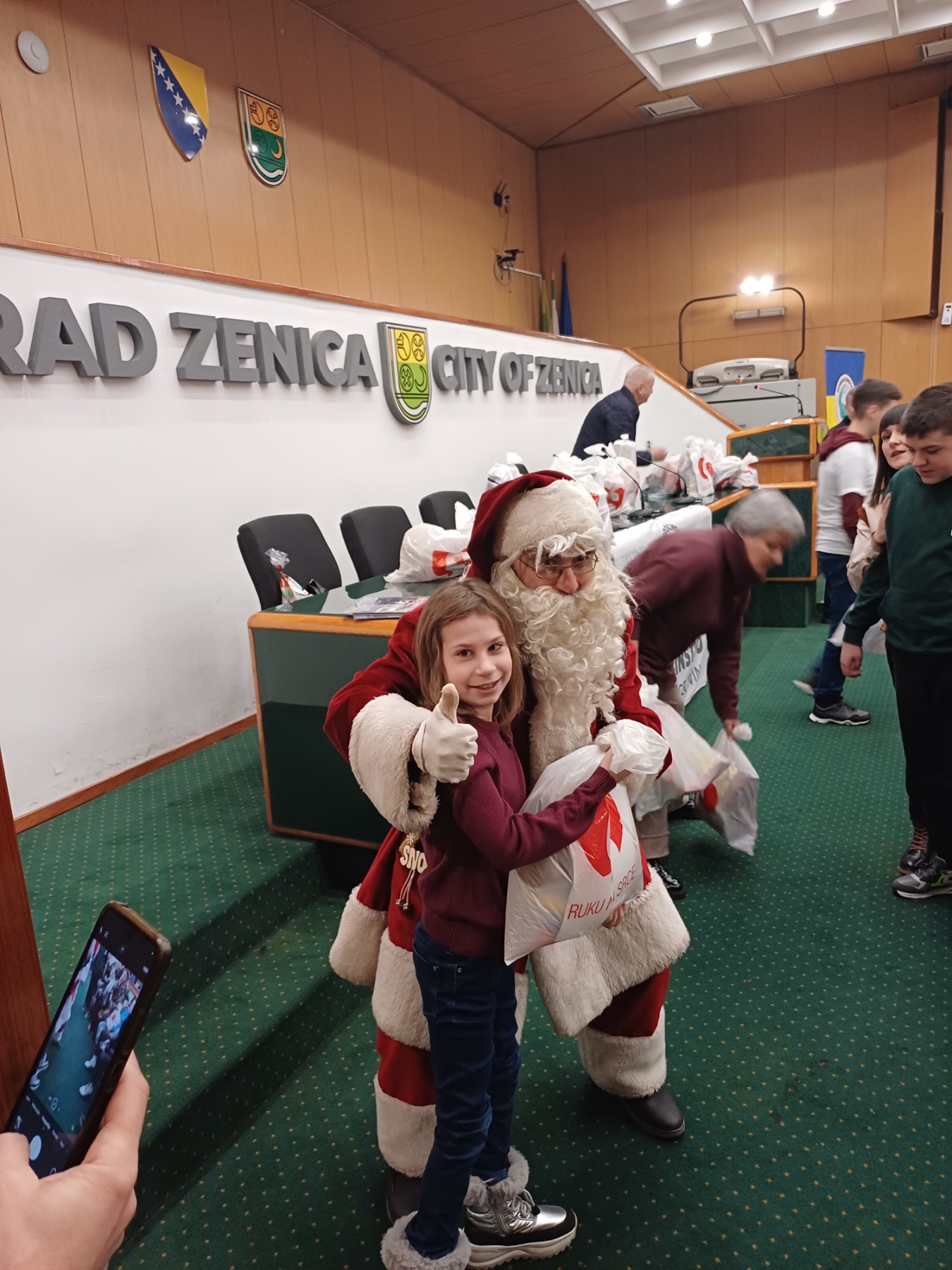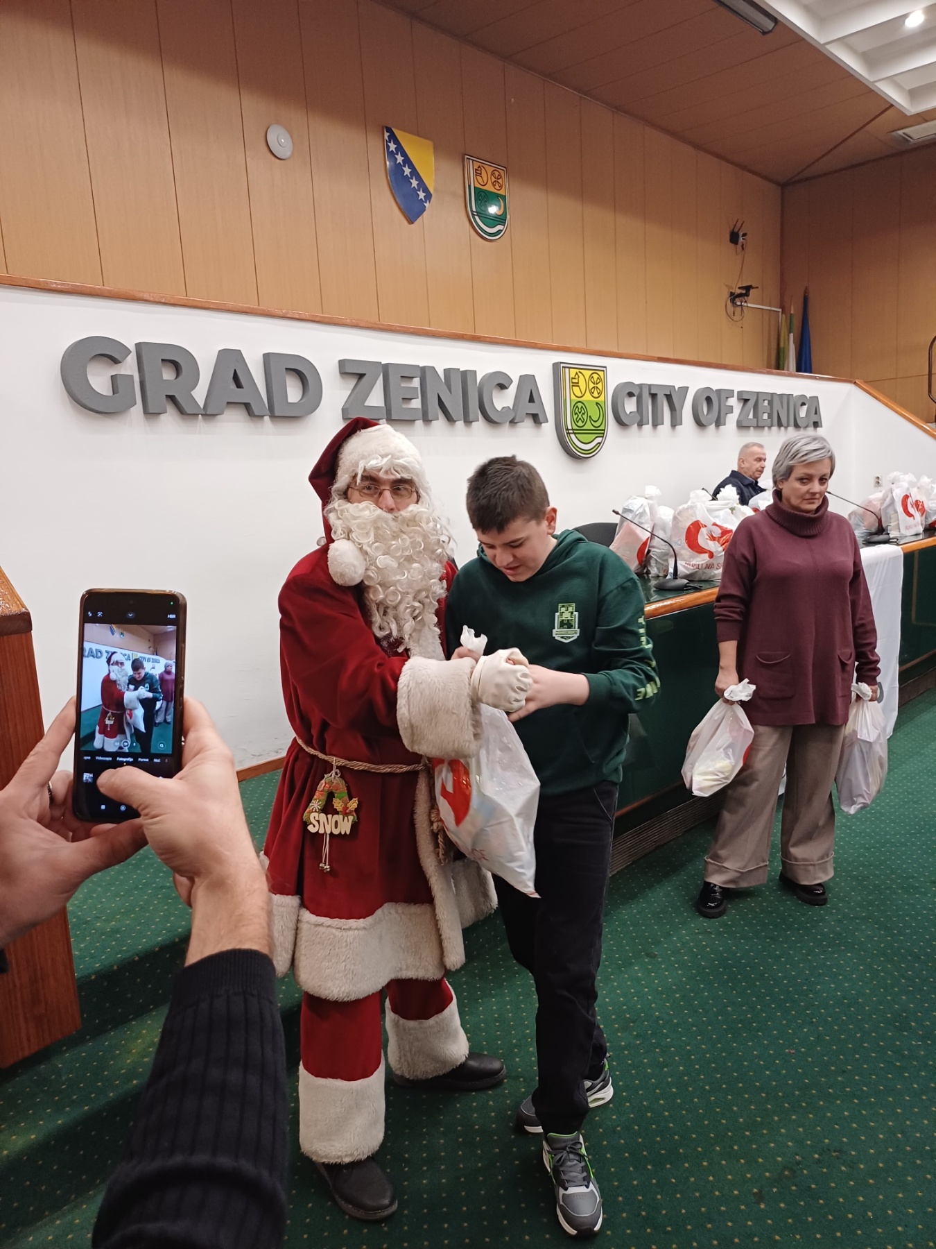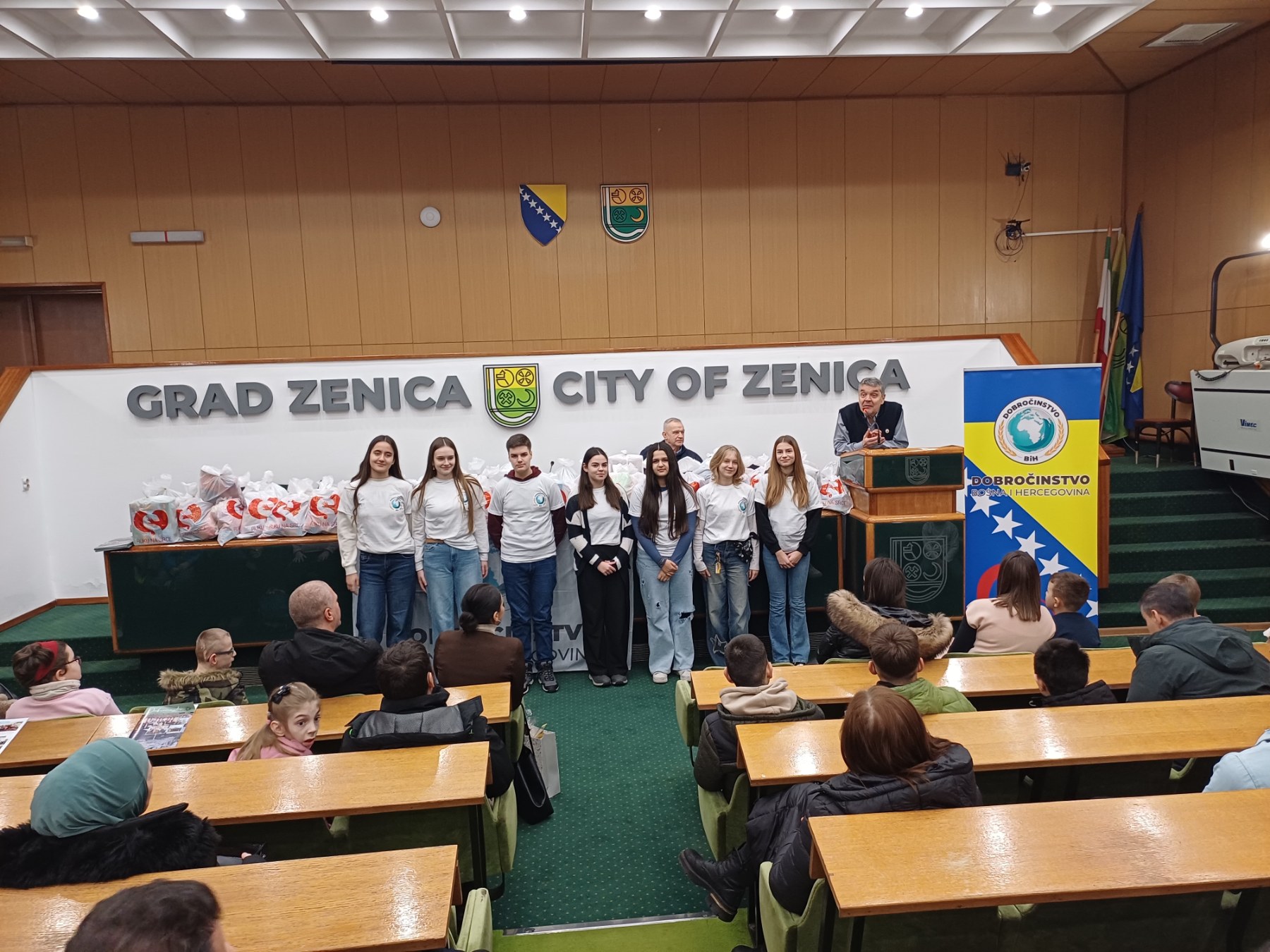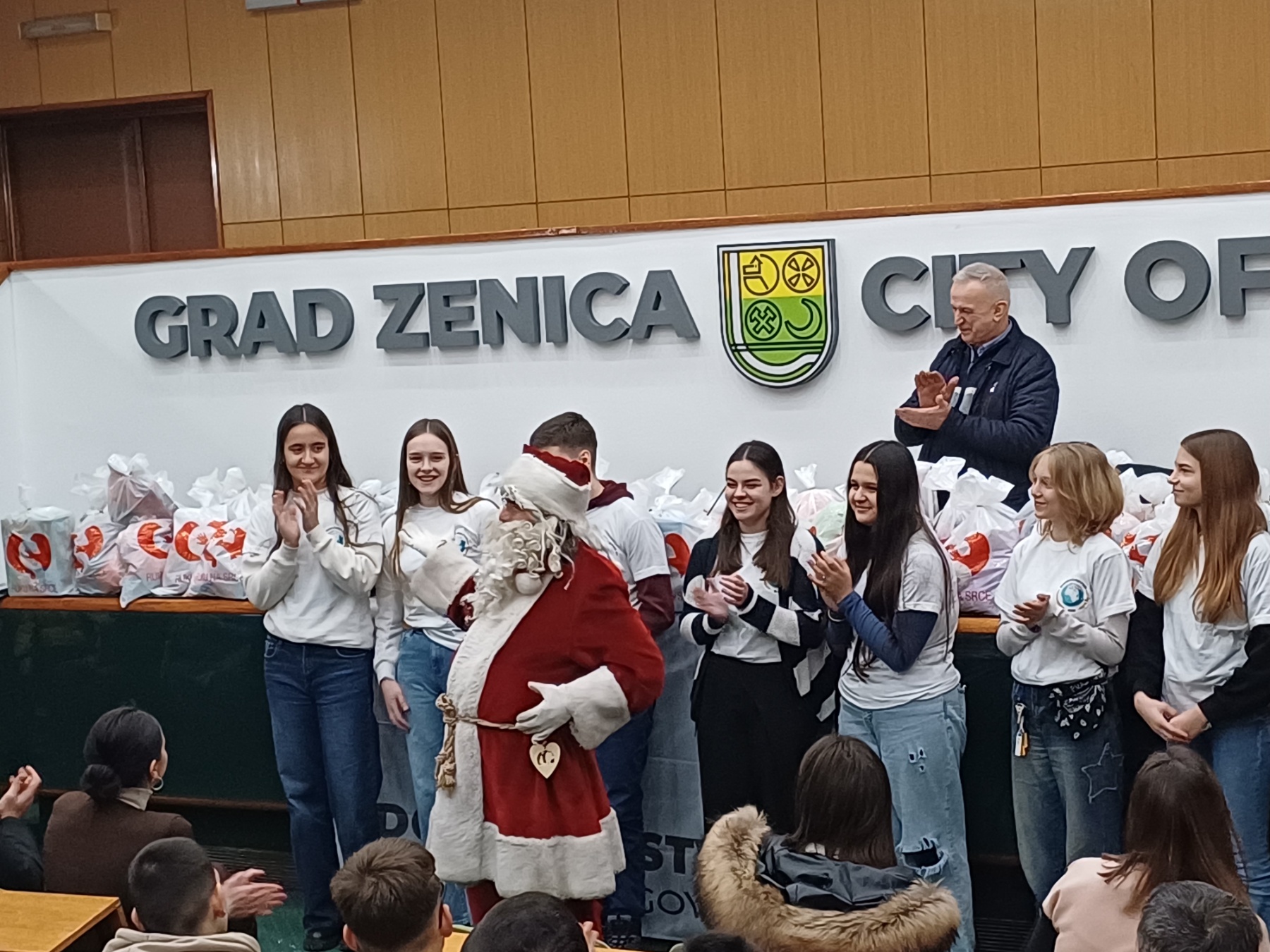 su učestvovala djeca iz zeničkog vrtića “Mala tratinčica”, volonteri “Dobročinstva” iz OŠ “Mak Dizdar” Zenica i, na posebno zadovoljstvo onih kojima su uručeni paketići, Djeda mraz.