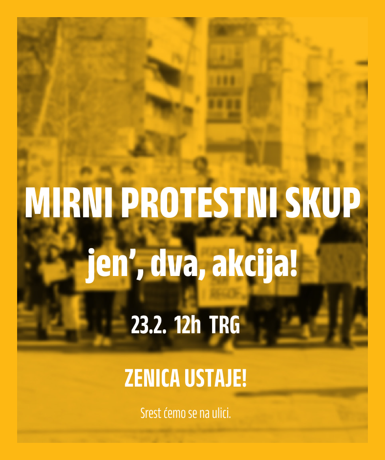 U nedjelju, 23.2.2025. godine u 12h planirano je simultano održavanje protestnih skupova u dva bh. grada, pod zajedničkim parolama: Zenica ustaje i Sarajevo ustaje.