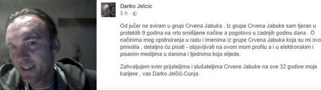 – Iz Crvene Jabuke sam tjeran proteklih devet, a pogotovo zadnjih godinu dana, i to na vrlo smišljene načine – napisao je Jelčić. Dodao je i kako su ga neki članovi benda opstruirali u radu, ali nije naveo o kome je riječ.