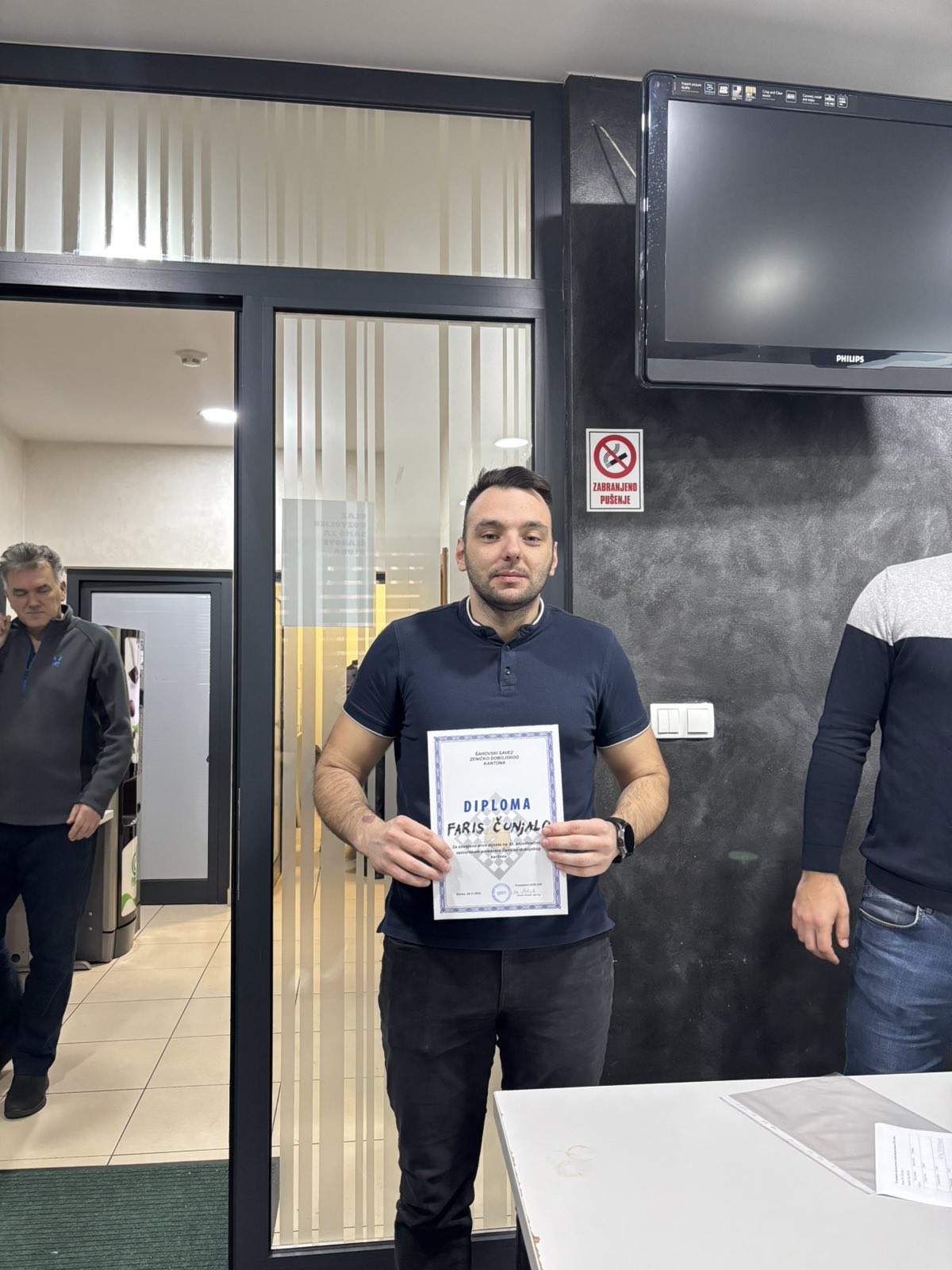 Nakon 9 odigranih kola, prvo mjesto pripalo je Zeničaninu – CM Faris Čunjalo. Faris je iz 9 partija sakupio 8 poena. Isto toliko je imao i drugoplasirani FM Muris Konjičanin, ali sa nešto lošijim dodatnim kriterijem.