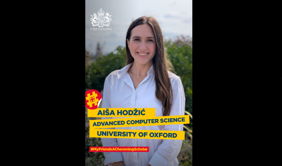 Ambasada Velike Britanije u BiH predstavila je Aišu kao jednu od stipendistica generacije #CheveningBiH, ističući da su upravo ovakvi mladi ljudi najbolji ambasadori znanja, predanosti i uspjeha.