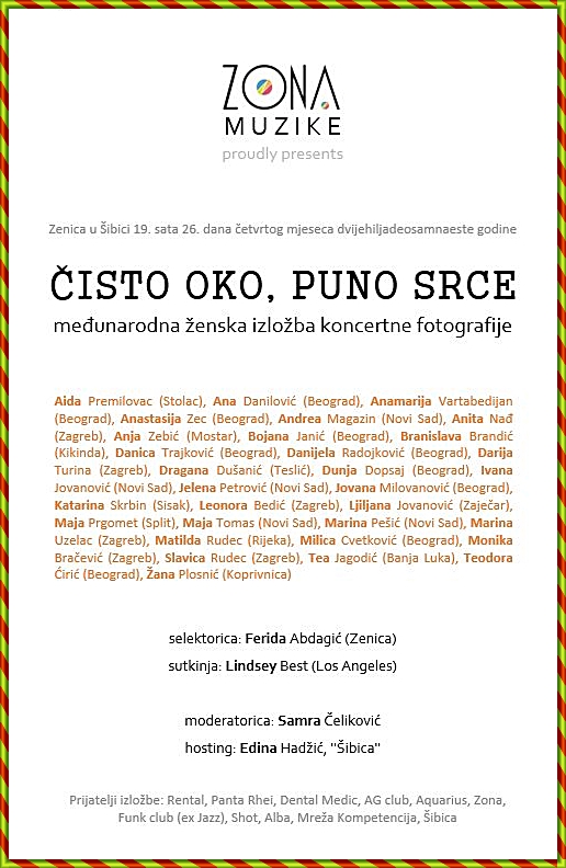 Na godišnji konkurs zeničkog udruženja ”Zona muzike” pristiglo je imprtesivnih 450 umjetničkih fotografija, koje su dostavile 47 autorica iz 18 gradova regiona, Sarajeva, Mostara, Banja Luke, Teslića, Stolca, Zenice, Doboja, Novog Sada, Beograda, Zagreba, Splita, Rijeke, Siska, Zaječara, Pazina, Kikinde, Koprivnice i Umaga.