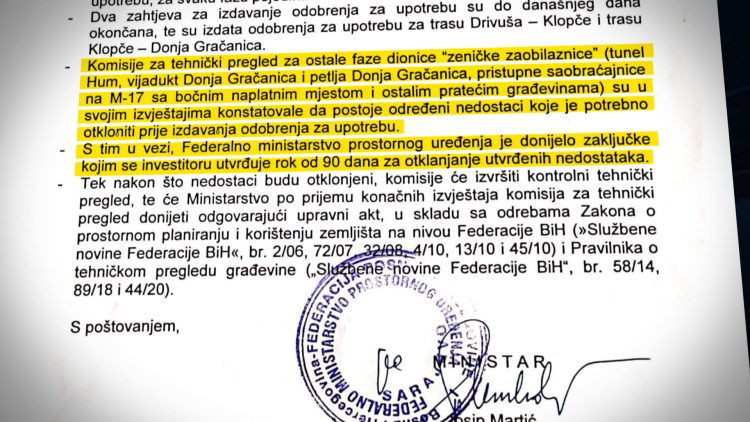 Zenička zaobilaznica: Ko laže?- Tek dvije od pet dionica dobile su upotrebnu dozvolu, trasa Drivuša Klopce i Klopce Donja Gračanica. I to je posljednja informacija nadležnog Mininistarstva prostornog uređenja FBiH.