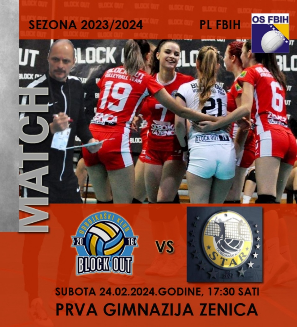 Utakmica OK “BLOCK OUT” vs OK “STAR” igra se ove subote, 24.02.2024. u Prvoj Gimnaziji Zenica sa početkom u 17:30 sati.