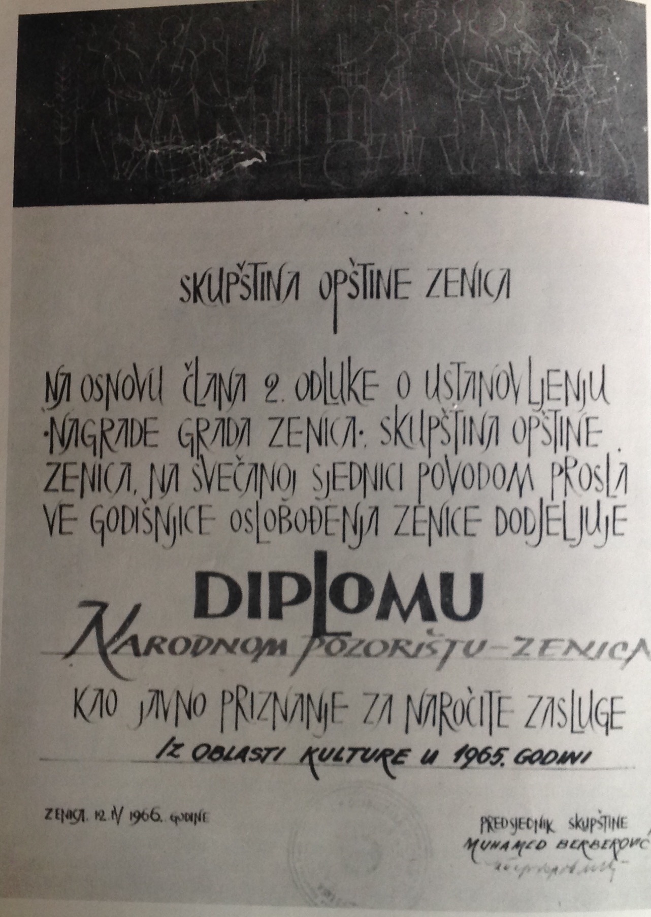Predstave Narodnog pozorišta “Lusi Kraun” (1961/62), “Staklena menažerija” (1965-66), “Pasha nosača Samuela” (1966/67), “Derviš i smrt” (1967/68) i “Pelinovo” (1972/73), žiri Udruženja dramskih umjetnika Bosne i Hercegovine proglasio je najboljim u republici. Svakako treba pomenuti i predstave “Kod večite slavine” , “Pehlivan Šahin”, “Ugursuz”, “Kristifor Kolumbo”, “Zavera” i predstavu “Vox humana”, koja je je oduševila mnogobrojnu publiku i kritičare.