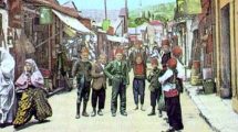 Ali, vratimo se u šezdesete godine prošlog vijeka i “Kuli” drvenog mosta, sa njene lijeve i desne strane, putem između Čurukovića kuće i kuće Ibrahimagića, pa prema drvenom mostu. Prije mezarluka, lijevo je put vodio u image1.JPG, a desno prema Obrinjcu, preko Babine rijeke. Na Obrinjcu su bile njive Ekinovića: Ahmeda, Muhameda, Mehmedalije, Omera, Hanumice. Niže od Hanumice (Dračo), bila je ljetna kuća Muhameda i njiva (sadašnja Omladinska zadruga, Badmington klub, sve do kraja sadašnjeg placa (HB). Uz put za garnizon, sa lijeve strane je bila kuća Kratine Muhameda, a sa desne kuća Ninkovića. Cesta prema mostu je bila kraj Babine rijeke i naglo motala prema mostu. Samo je stara musala ostajala sa desne strane. Staro turbe je bilo gdje je sada nova musala, a mezarluci su bili na mjestu sadašnje ceste. I eto, dođosmo do mosta. Most je bio drveni, na kamenim kulama, sa drvenim trotoarom preko kojeg je bio nabačen asfalt. Ljeti, kad ugrije, asfalt popusti, pa ekseri predstavljaju veliki problem bosim nogama pješaka na trotoaru, što od topline asfalta, što od golih eksera. Ako hoćeš na Jagnjišće, s ograde na kulu, upravo onu prikazanu na Mirsinoj slici, ideš s kule preko prečki i kosnika na adu. Rutinski, što bi se reklo. Trebalo je znati svaku izbočinu, svako udubljenje, da bi se bezbjedno spustilo u samo podnožje kule.
