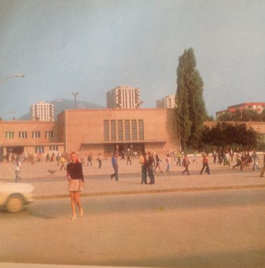 Prostran trg ispred, a sa lijeve strane taxi stajalište. Zgrada na sprat, osim ulaznog hola čiji je svod bio sve do pod krov. Na sredini ulaz u hol, a ujedno i izlaz. Velika dupla vrata, kako i priliči takvim građevinama. Godina gradnje nije bitna, koliko se sjećamo – 1960.godine ili 1991. godine, sasvim je svejedno. Uz stepenice pa na plato pred ulaza. Sa lijeve strane čistač cipela Ramadan, crnomanjast čovjek sa brkovima, nudi svoje usluge. Ulaz u sam hol predstavljao je pravi doživljaj, da li putovali, ispraćali nekoga ili dočekivali goste. Sa lijeve strane, odmah do staklene vanjske pregrade, smješten automat za fotografisanje. Mala „kućica” sa platnenim zastorom na ulazu, određeno mjesto: „ubaciti 50 dinara”, natpis: “4 fotografije za pet minuta”.