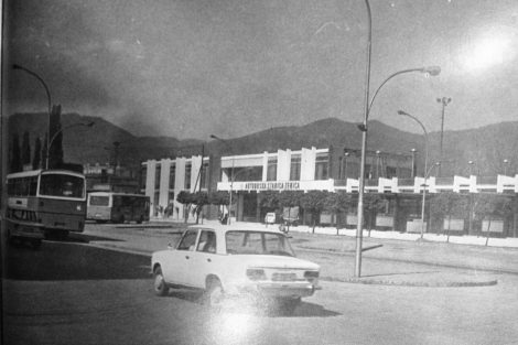 Prostran trg ispred, a sa lijeve strane taxi stajalište. Zgrada na sprat, osim ulaznog hola čiji je svod bio sve do pod krov. Na sredini ulaz u hol, a ujedno i izlaz. Velika dupla vrata, kako i priliči takvim građevinama. Godina gradnje nije bitna, koliko se sjećamo – 1960.godine ili 1991. godine, sasvim je svejedno. Uz stepenice pa na plato pred ulaza. Sa lijeve strane čistač cipela Ramadan, crnomanjast čovjek sa brkovima, nudi svoje usluge. Ulaz u sam hol predstavljao je pravi doživljaj, da li putovali, ispraćali nekoga ili dočekivali goste. Sa lijeve strane, odmah do staklene vanjske pregrade, smješten automat za fotografisanje. Mala „kućica” sa platnenim zastorom na ulazu, određeno mjesto: „ubaciti 50 dinara”, natpis: “4 fotografije za pet minuta”.