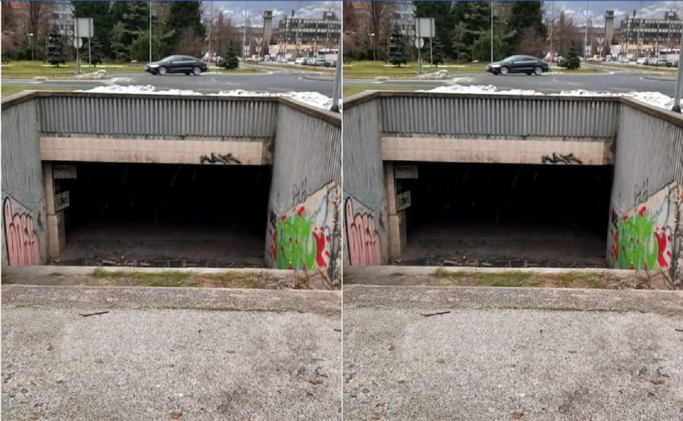 Fotografija kazuje gdje se ovaj prolaz nalazi, nije ga teško prepoznati, sa sve četiri strane je ove raskrsnice, danas kružnog toka, baš kao da je, što i jeste razapet na sve četiri strane svijeta, nadopunjujući ono danas aktuelno, zona jug, zona sjever, s tim što ovi prolazi imaju i istok i zapad, bogatiji su za čitava svoja dva pogleda , na istok i na zapad, kao da čekaju da se živi ljudi opredijele kroz koji će prolaz ući, silazeći niz one stepenice, a kada siđe, da bira gdje će izaći, da li na ostale tri strane izlaza, na jug, na zapad na istok, jer ušao je sa sjevera.