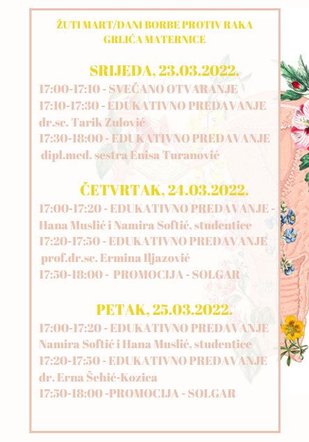 Sadašnji projekat nosi simboličan naziv “Žuti mart”, a posvećen je obilježavanju borbe protiv karcinoma grlića maternice. Mjesec mart je u znaku žena, važnosti žene i njene uloge u društvu, a mi kao budući zdravstveni radnici želimo staviti naglasak i na važnost zdravlja žene i brige žena za vlastito zdravlje. Naziv „Žuti mart“ povezan je sa cvijetom koji je simbol borbe protiv karcinoma grlića maternice, mimozom.