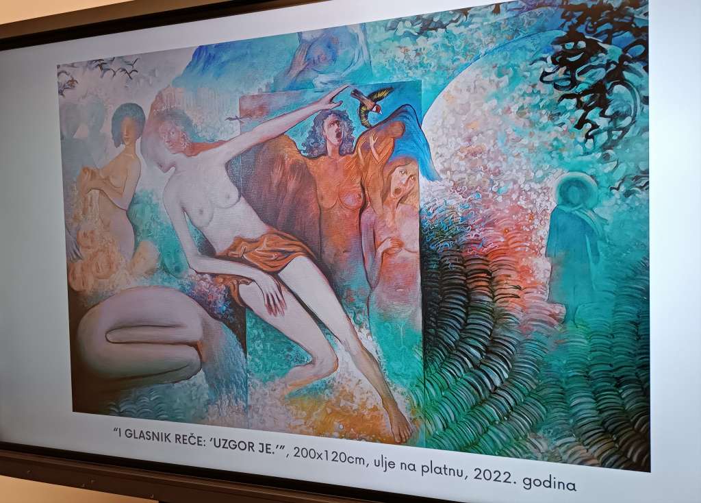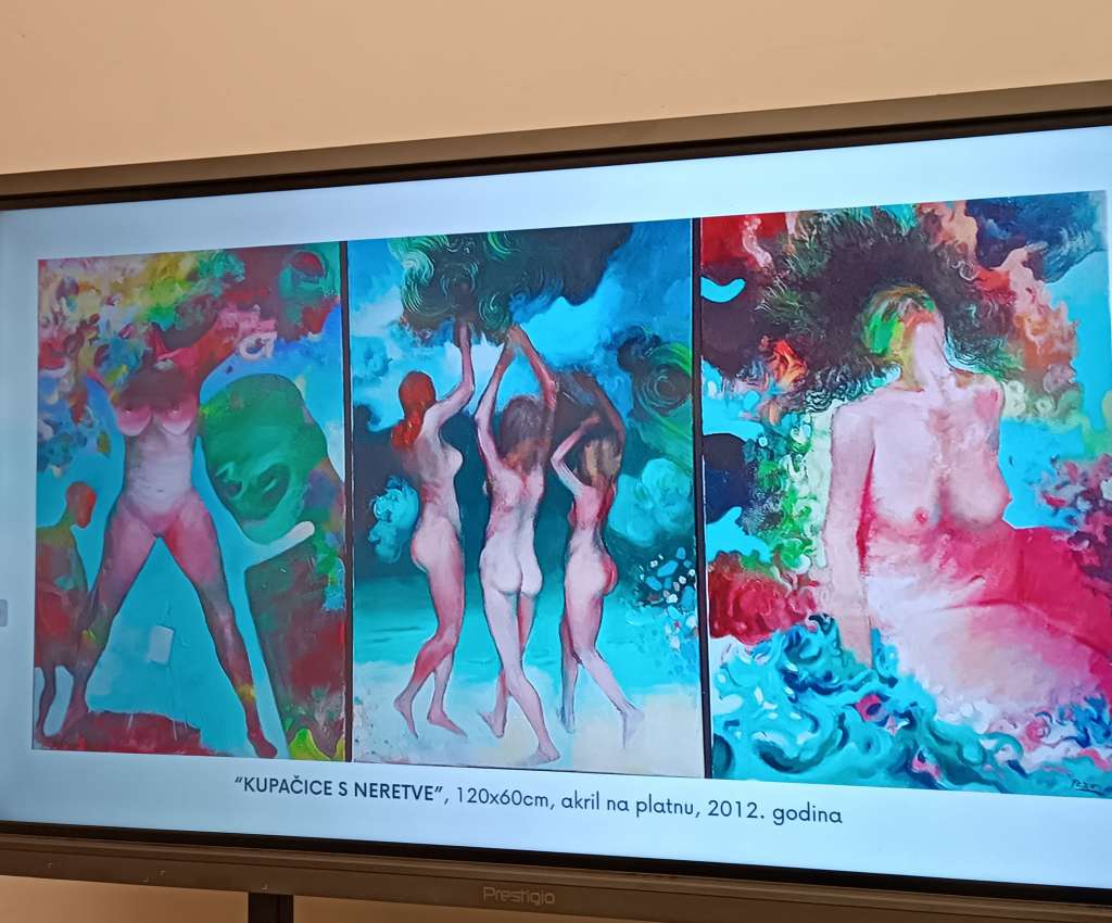 – Ja bih ovo svoje nazvao nekim poetskim nadrealizmom, gdje, jednostavno, sjediš i pričaš neku svoju priču… Ima tu još slika koje su mi jako drage i koje sam smatrao da treba da ih donesem, a to su moje Mostarke. To je jedan konglomerat ženskih likova, koji nisu rađeni radi ženskog lika, nego je to jedna figurativna kompozicija, igra likovnih elemenata i igra likovne kompozicije s kolorističkom kompozicijom – kazao je Pezo.