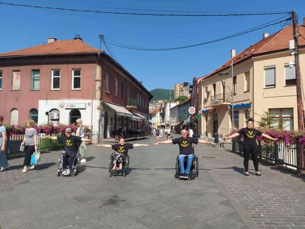 Udruženje paraplegičara i oboljelih od dječije paralize Grada Zenica izvelo je danas u centru tog grada jednosatni performans pod nazivom “Građani u društvu s invaliditetom”, koji je od prošle godine postao redovna tromjesečna aktivnost tog udruženja.
