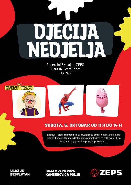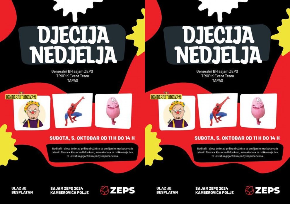Povodom obilježavanja Dječije nedjelje koja se obilježava svake godine u prvoj sedmici oktobra, а cilj obilježavanja је promocija prava djeteta, poboljšanje društvene brige za djecu i jačanje odgovornosti, generalni sajam ZEPS u suradnji sa TROPIK event teamom i TAPAS-om organizuje porodično druženje posljednjeg dana sajma.