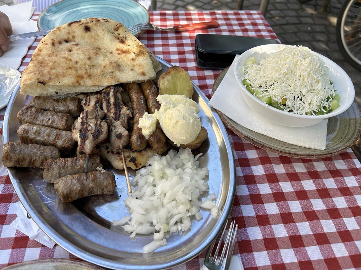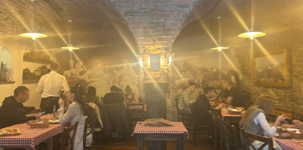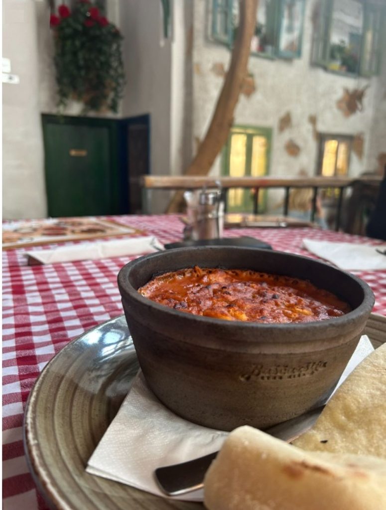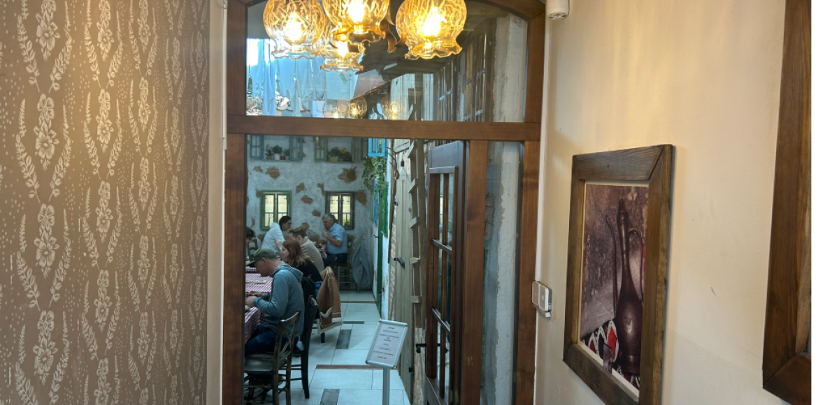 Red ispred ljubljanske Baščaršije. Kad uđeš unutra kao da si zakoračio onom originalnom, sarajevskom, ili se vratiš u djetinjstvo kad odeš do nene i dede u posjetu. Tu je domaćinski doček, prozori sa cvijećem, sahani na zidu, vez, drvo… Visi prostrt veš na štirku, zabijelile košulje, gaće, potkošulje…