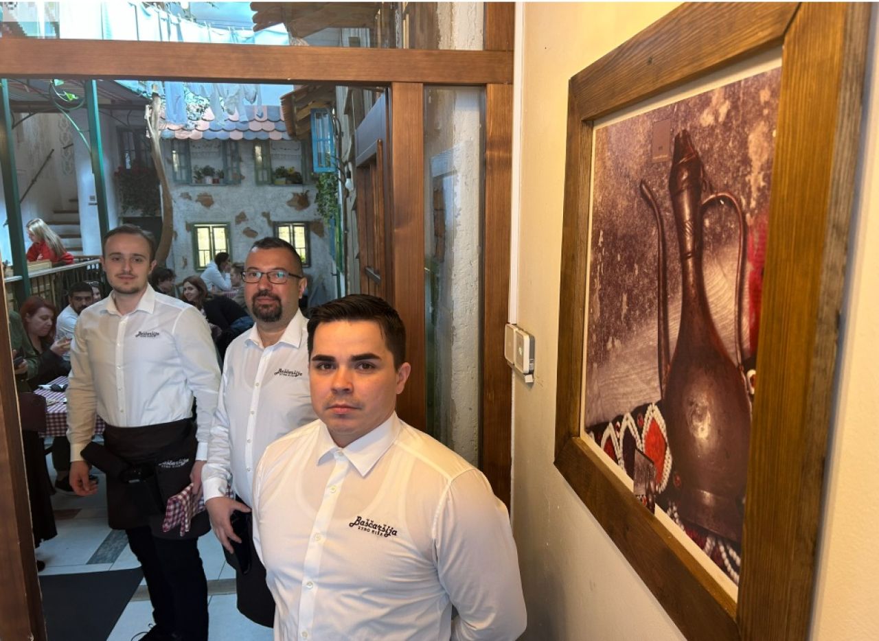 Borislav Popović, Aldin Pandža, Faris Ramić, predstavlja nam se dio ekipe konobara koje zatičemo u ovoj smjeni. Došli su iz Zvornika, Travnika, Visokog. U kuhinji je i Muhamed iz Indije. No, u Baščaršiji je najviše uposlenika iz Bosne i Hercegovine.