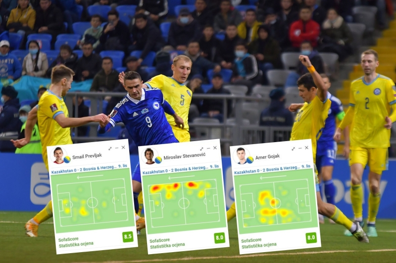 Njegovih 84% dodavanja bila su preciznja (41/49), od čeka su tri bilja ključna, a kreirao je i tri velike prilike za našu selekciju. I veznjak Dinama je s pozitivnim omjerom izlazio iz duela sa Kazahstancima. Od njih sedam na tlu je dobio četiri, dok je u tri od četiri zračna okršaja nadskočio kazahstanske fudbalere.