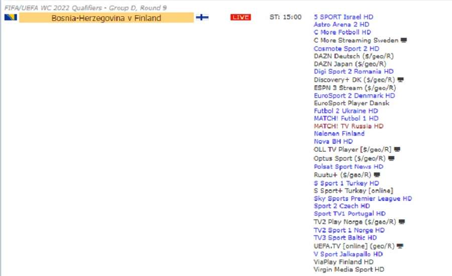 Gledatelji u Bosni i Hercegovini susret imaju priliku gledati na kanalu Nova BH. Spisak programa, internet servisa koji prenose duel iz Zenice: