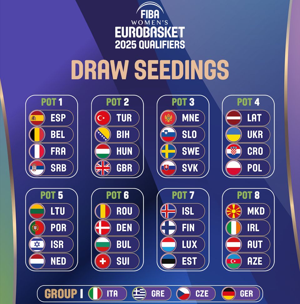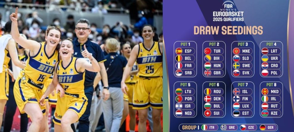 Međunarodna košarkaška federacija (FIBA) saopćila je danas raspored jakosnih grupa uoči žrijeba kvalifikacija za Evropsko prvenstvo košarkašica, koje će se 2025. godine održati u Njemačkoj, Italiji, Češkoj i Grčkoj.