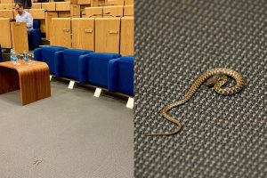 Nakon što je zmija izazvala čuđenje kod prisutnih parlamentaraca, jadan od službenika sklonio ju je koristeći komad papira.