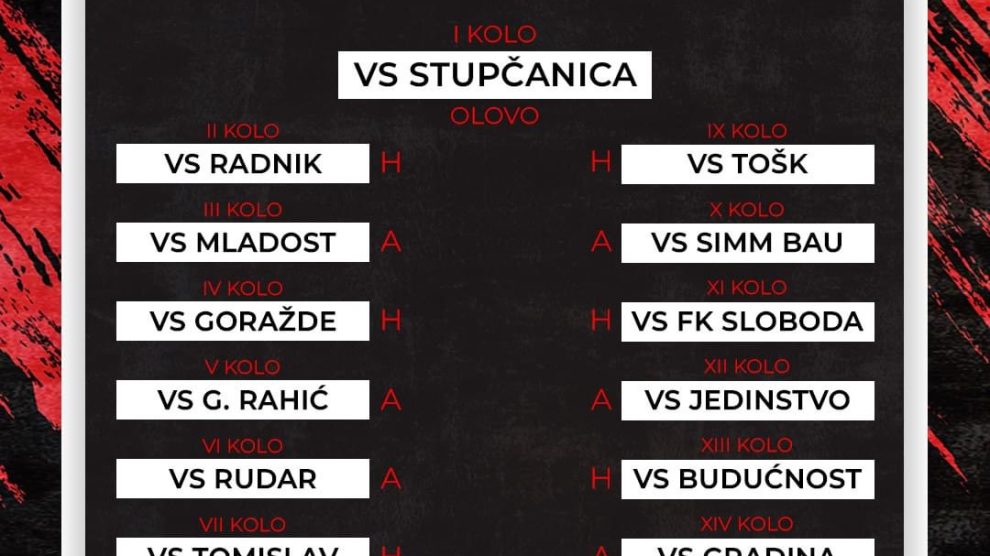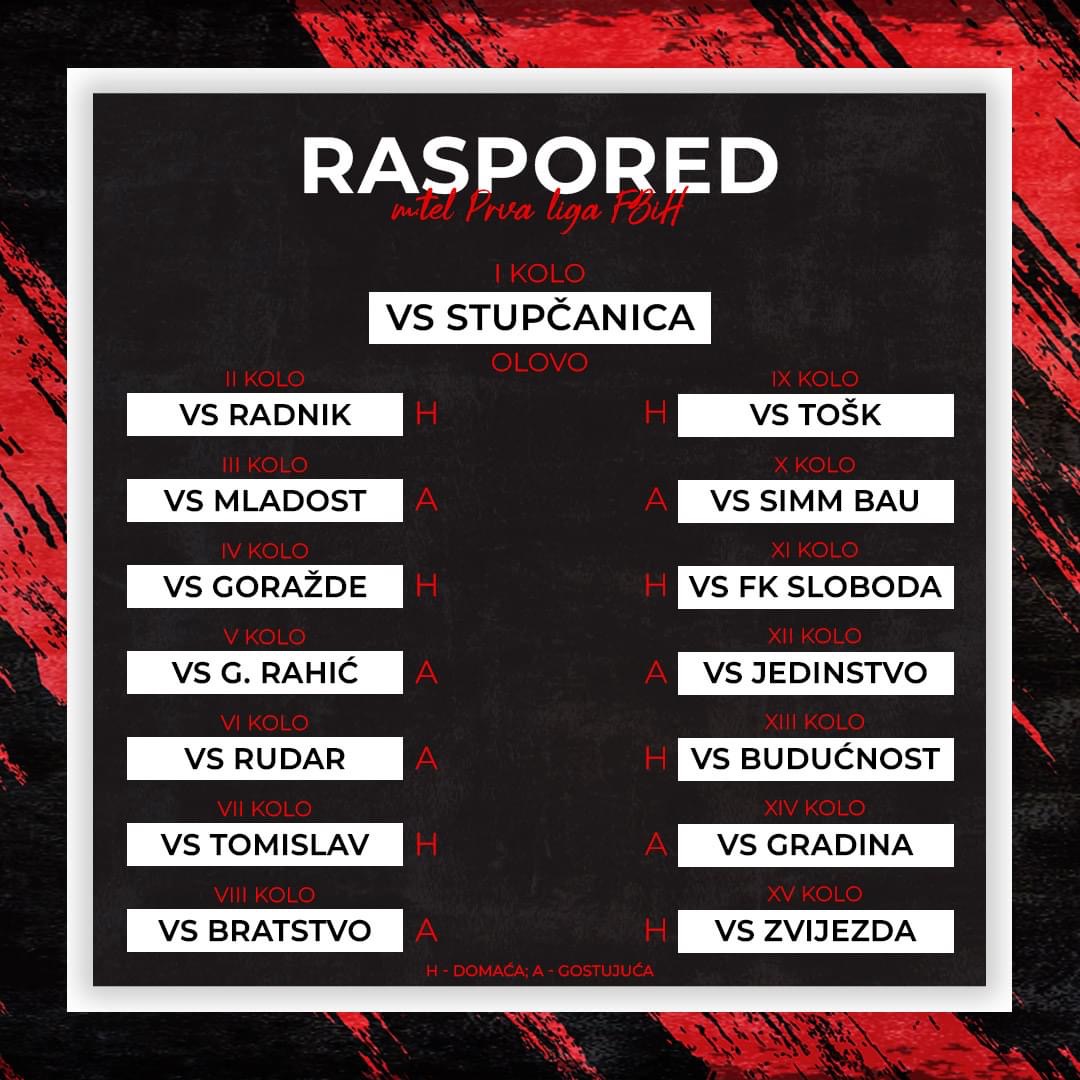 Na fotografiji ispod se nalazi prikaz svih 15 kola jesenjeg dijela prvenstva. H – domaća utakmica; A – gostujuća utakmica