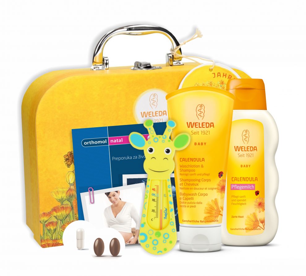 Da najljepši trenutak rođenja bebe bude još zabavniji i da se dugo pamti, kompanija Pharma Maac poklonit će porodiljama „Kofer uspomena“ dizajniran tako da u njega stanu sve sitne stvari kao trajna uspomena na najvažnije trenutke života. Ali da zadovoljstvo bude veće, u koferu će mame pronaći i Weleda uzorke za njegu osjetljive bebine kože, Orthomol Natal za nastavak unosa vrijednih mikronutrijenata tokom dojenja, termometar za tačno određivanje idealne temperature vode firme Bojprom, brošure sa savjetima i, naravno, neizostavne kupone sa vrijednim popustima (30% na jedan proizvod iz Weleda asortimana, 20% na Rabenhorst sok po odabiru i 10% na Orthomol proizvod po želji).