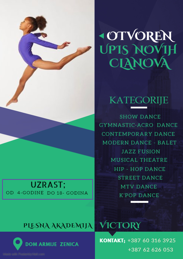 Akademija Victory Zenica: upis novih članova – Akademija Victory Zenica prva plesno umjetnička akademija u našem gradu.