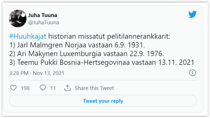 Penal koji nije realizirao Pukki bio je tek treći promšeni jedanaesterac u historiji finske selekcije.