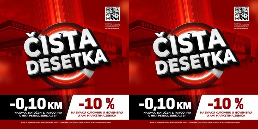 Pozivamo sve građane Zenice da posjete ove lokacije i iskoriste benefite jedinstvene akcije jer s Ami marketom i Hifa Petrolom – štednja je zaista Čista desetka!