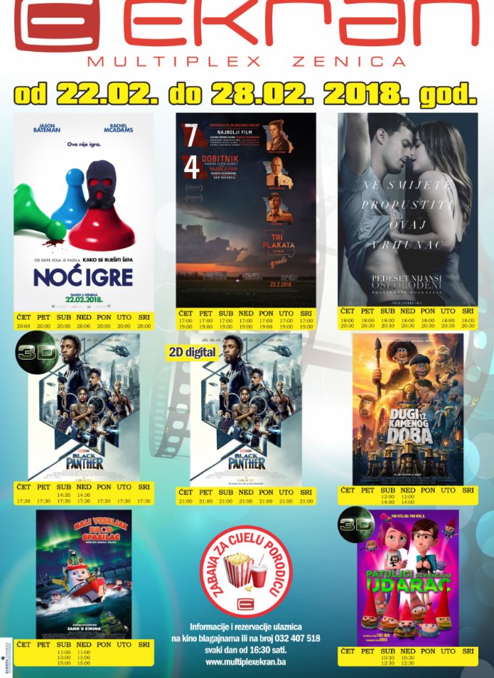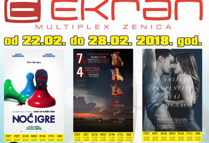 Posljednja sedmica februara donosi naslov koji je kandidat za oskara, neobična priča koja prati ženu kroz pravi mali rat protiv policije “TRI PLAKATA IZVAN GRADA” i urnebesnu komediju “NOĆ IGRE”