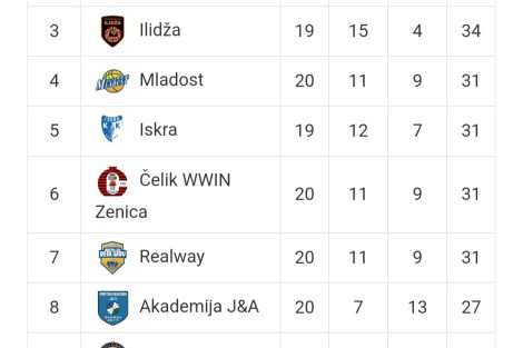 OKK Čelik WWIN u 20 utakmica ostvario je 11 pobjeda i 9 poraza, šesto mjesto sa 31 bod.